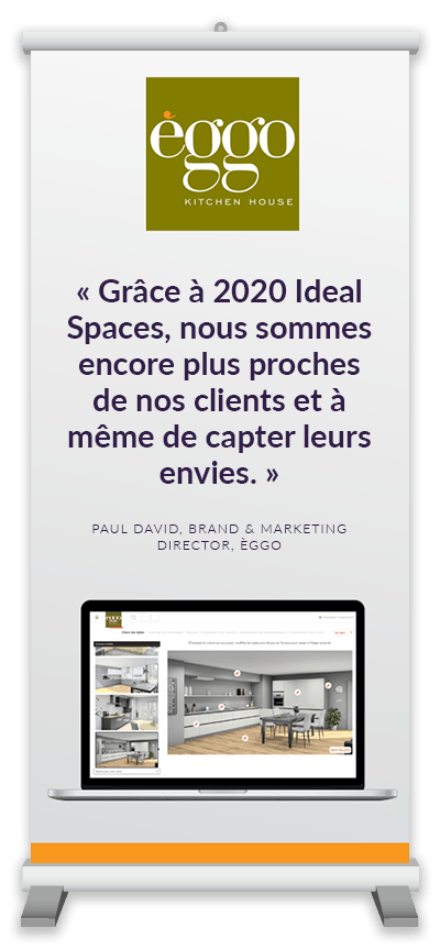 2020 Ideal Spaces est un configurateur en ligne destiné aux particuliers. Il augmente de manière exponentielle l’engagement avec les prospects et inspire vos clients à poursuivre leur démarche avec vous jusqu’au bout. Disponible 24 heures sur 24, 7 jours sur 7, 2020 Ideal Spaces améliore l’expérience à chaque étape du cycle de vente – de l’inspiration à la concrétisation du projet d’aménagement.